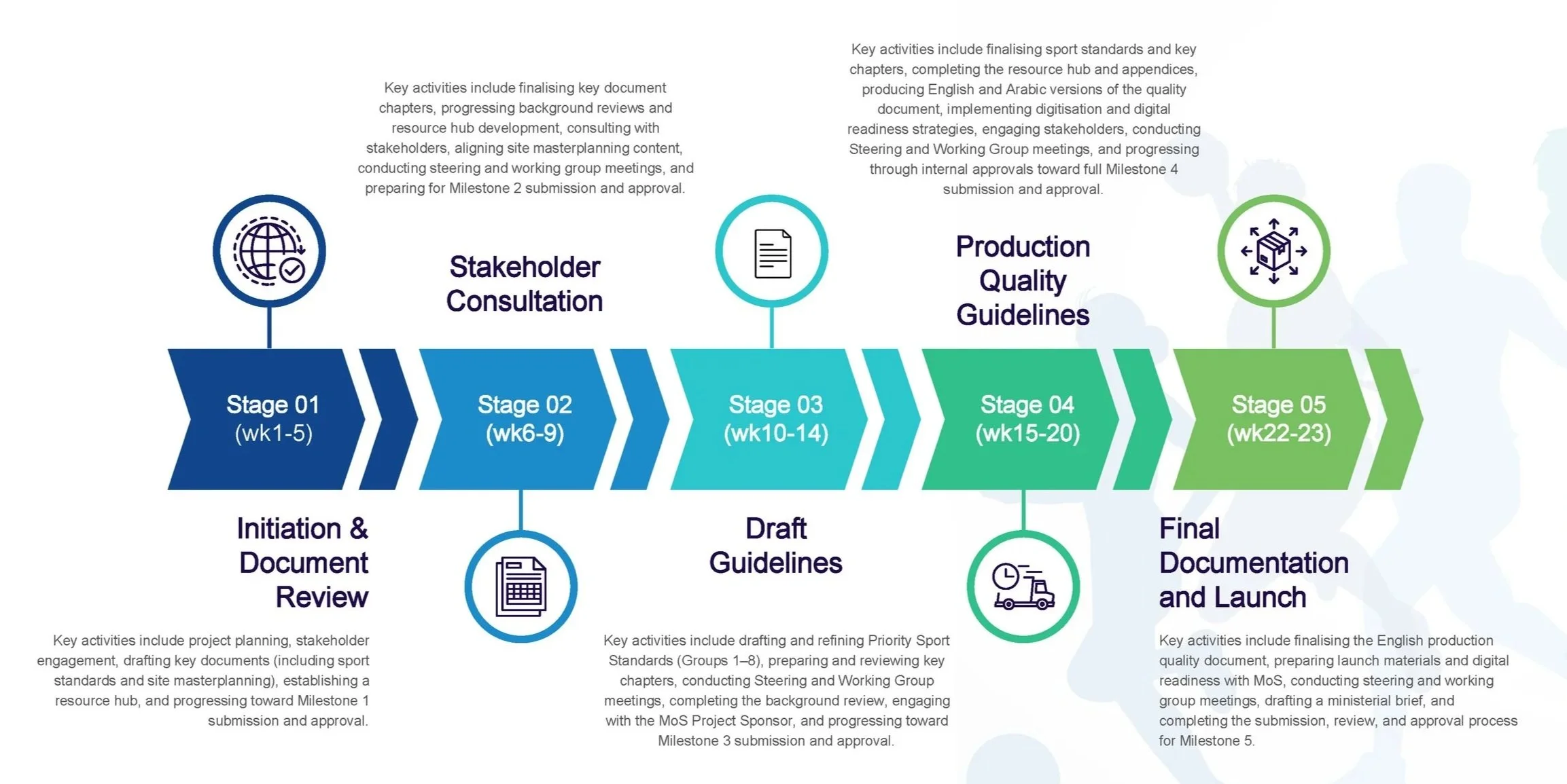 Prior to this initiative, sports facility development in the KSA lacked a cohesive set of standards. Disparate design approaches, varied technical requirements, and inconsistent communication formats created inefficiencies, increased costs, and hampered stakeholder alignment.